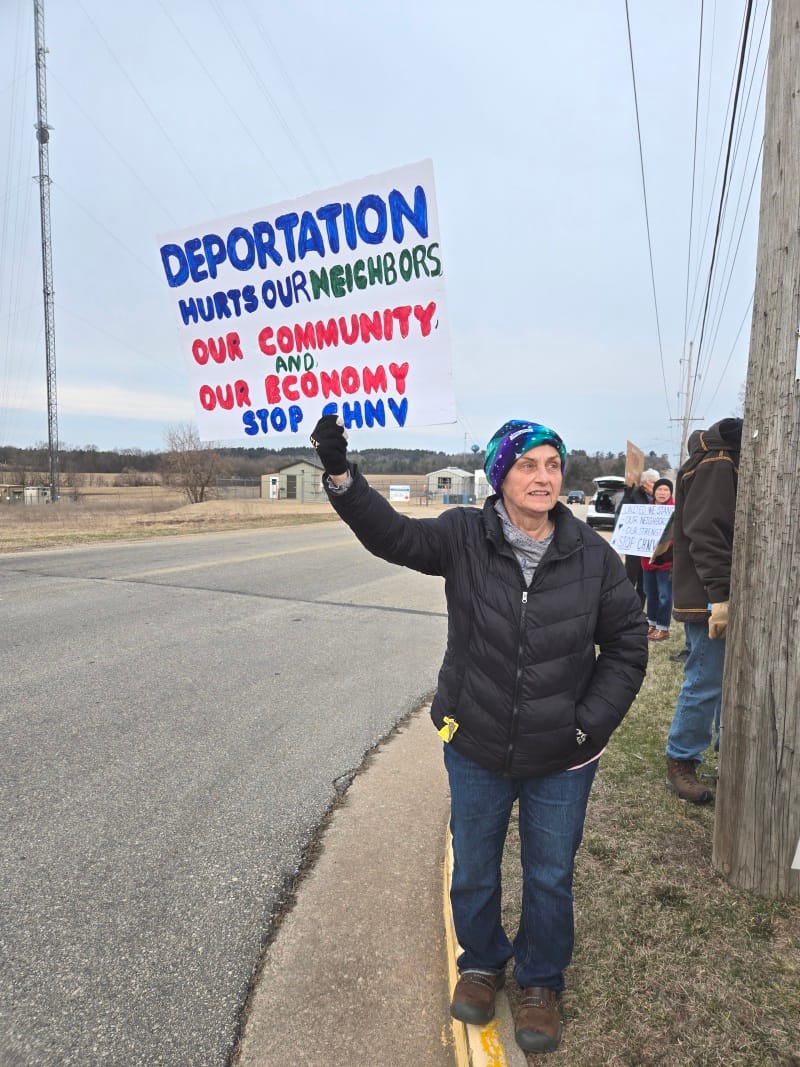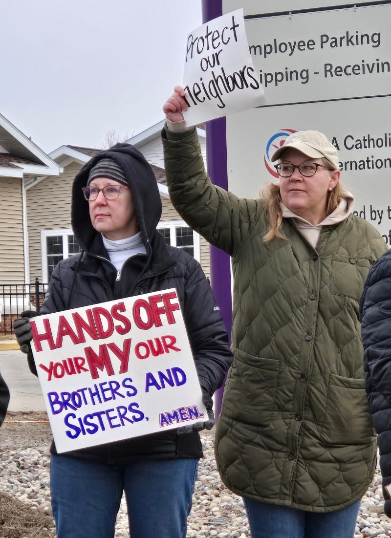 Also on hand was Rev. Debi VanDenBoom of the New London United Methodist Church. VanDenBoom has been in New London since last July and said she felt the need to be present Wednesday to be a witness for the church and because of her own convictions. She struggled to find the words for the actions the administration has taken.