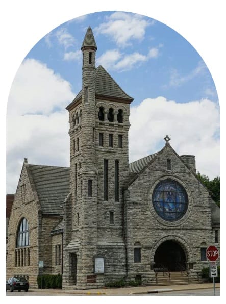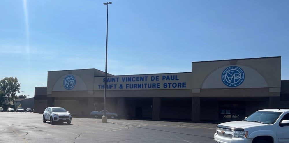 The Oshkosh Area Community Pantry occupies one-half of the Saint Vince De Paul Thrifty and Furniture Store; far right: Trinity Episcopal Church where the food pantry all began