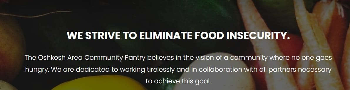The Oshkosh Area Community Pantry began as the Ecumenical Food Pantry at Trinity Episcopal in Oshkosh in 1989. First Congregational, First United Methodist, Algoma United Methodist, Wesley United Methodist, Christ Lutheran and First Presbyterian came on board to support the mission. In 2008, leaders around the area determined that food insecurity was not going to be solved either by churches or by the government and created the Oshkosh Area Community Pantry. It leases one half of a building owned by Saint Vincent de Paul Society on Jackson Street in Oshkosh.