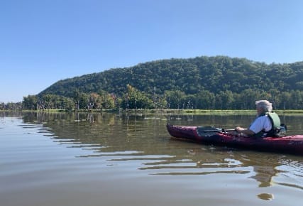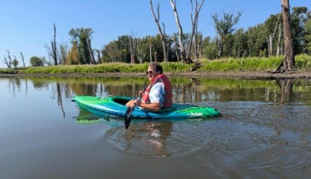 The kayaking was lovely with easy access to the calm backwater of the Mississippi.